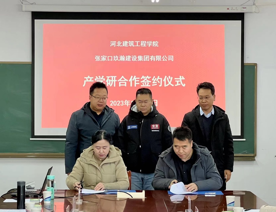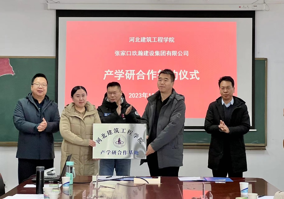 11月29日上午,tyc122ccvip与玖瀚建设集团有限公司进行了校企产学研合作交流,并举行产学研合作签约及授牌仪式。参加仪式的有张家口市桥西区教育体育和科学技术局副局长冀红斌、张家口玖瀚建设集团有限公司总经理周澄文、副总经理张智彪、tyc122ccvip科研处处长贾玉贵、tyc122ccvip党委书记于江利、经理常青、部分教师及企业员工代表,会议由于江利书记主持。