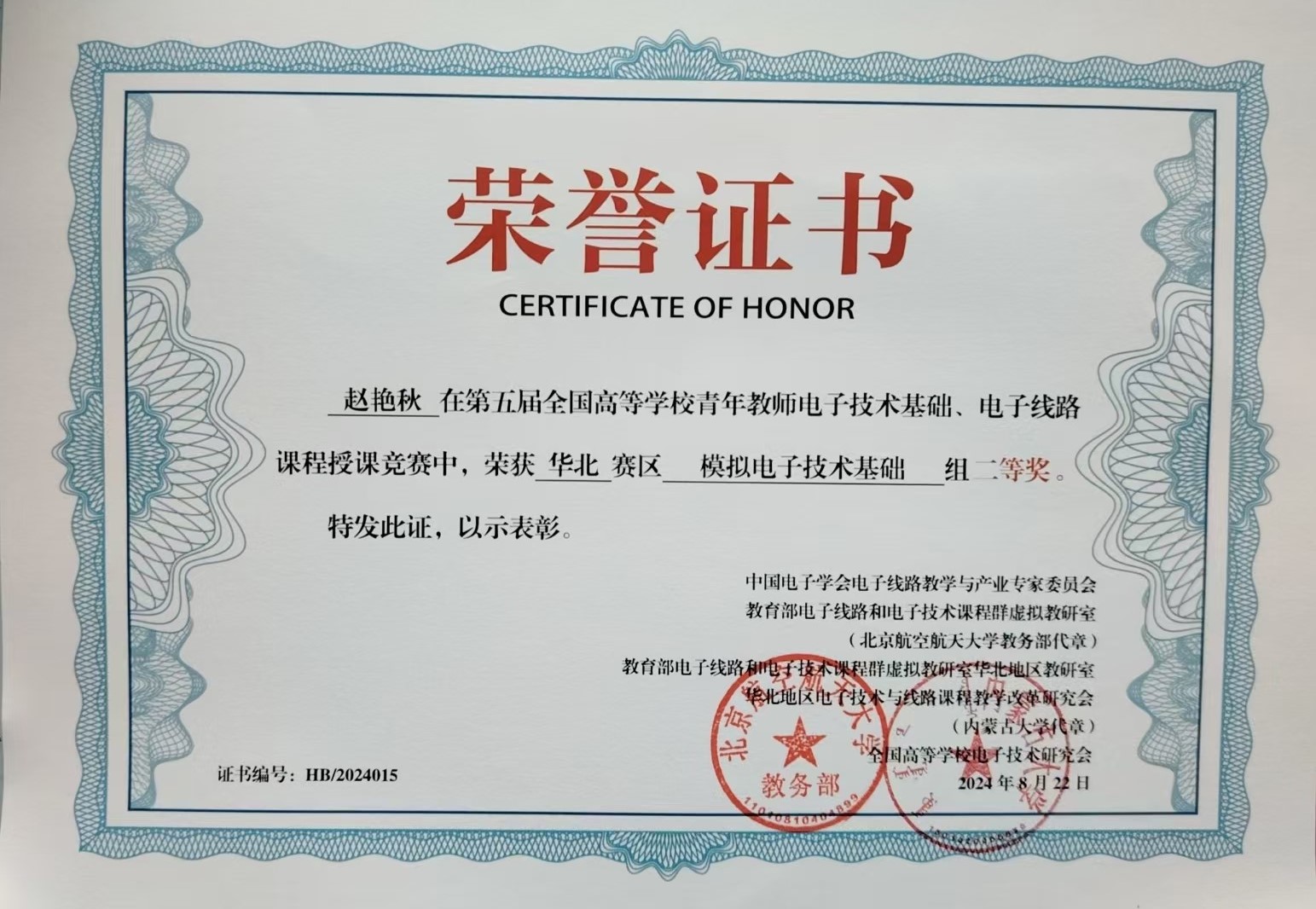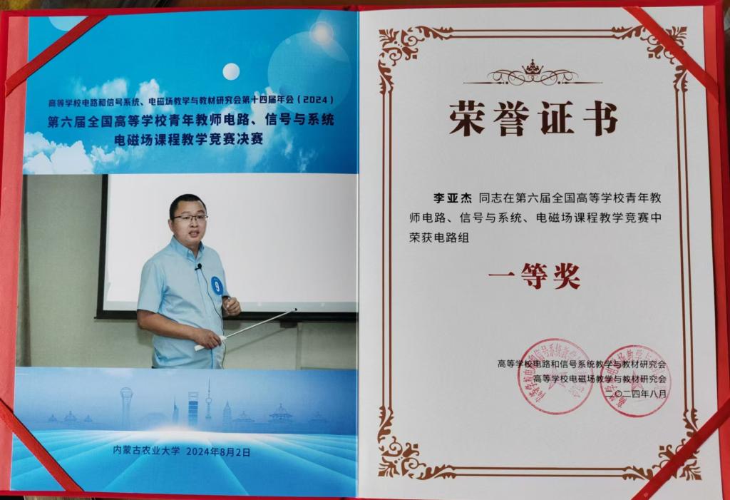 8月1-4日,在“第六届全国高等公司青年教师电路、信号与系统、电磁场课程教学竞赛”中,李亚杰老师获得电路组一等奖。8月12-15日,在“第五届全国高等公司青年教师电子技术基础电子线路课程授课竞赛”中,赵艳秋老师获得华北赛区二等奖。11月15-17日,在“第二届全国高等公司建筑电气与智能化专业教师讲课竞赛”中,郑运昌老师获得二等奖。