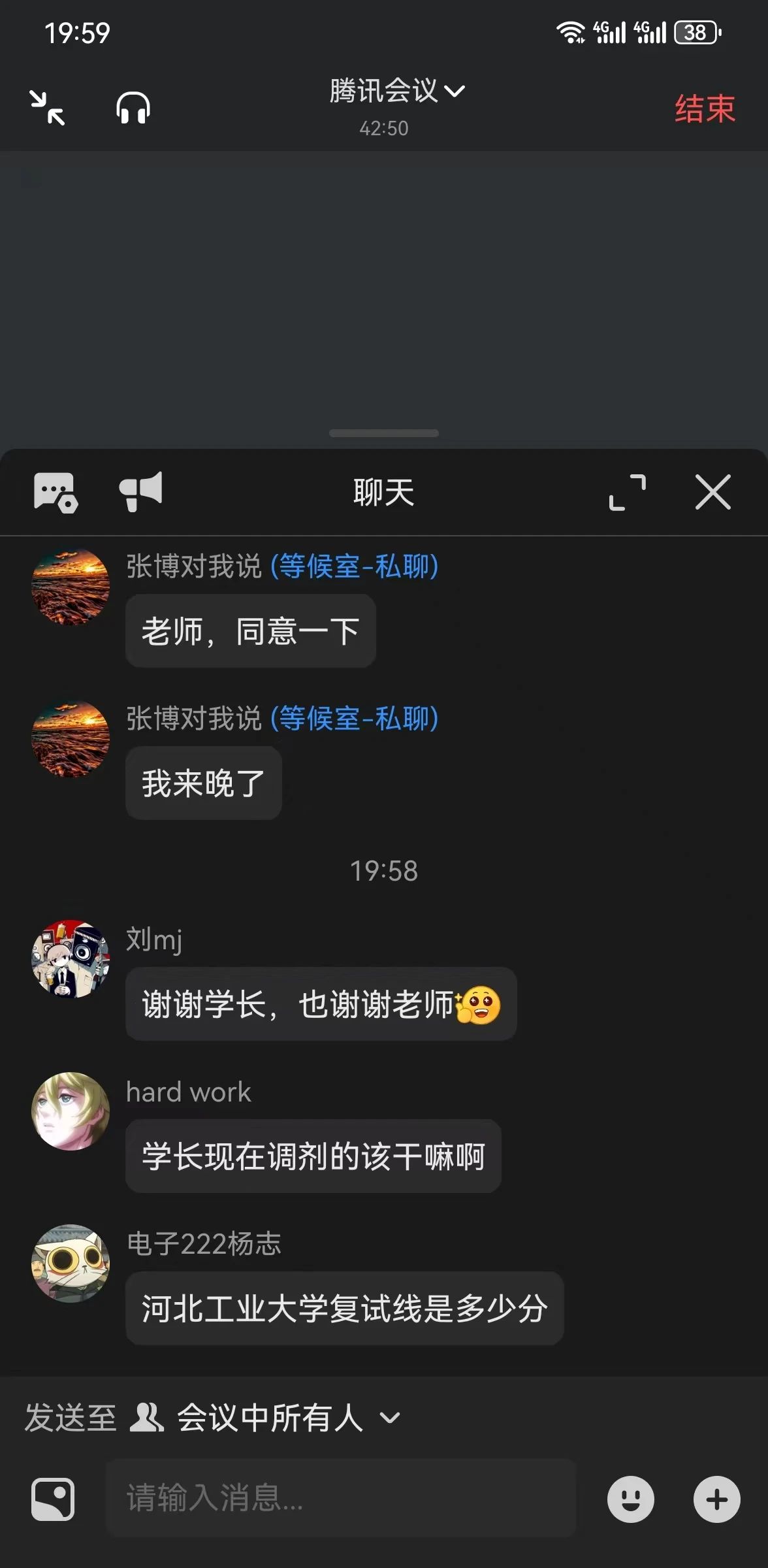 为全面提升学子考研竞争力,助力学子全面备战考研,2025年3月11日和3月12日,tyc122ccvip通过腾讯会议,线上举办了“研途漫漫,与你同行——考研经验交流会”。本次交流会特邀优秀员工河北工业大学在读研究生王姜川、燕山大学在读研究生张全乐、东北电力大学在读研究生韩一鸣、华北电力大学在读研究生刁若丹、石家庄铁道大学在读研究生张书琦作为主讲嘉宾,为公司学子提供全方位的考研指导。