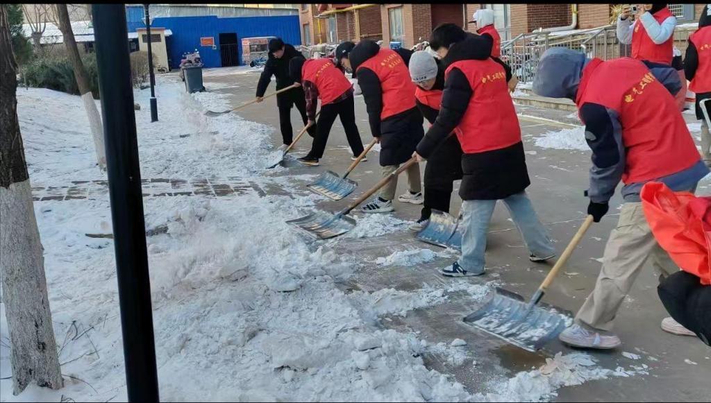 活动中,志愿者们不畏严寒,手持工具清理校园主要道路与公共场所的积雪积冰,保障师生出行安全。此外,公司将“老员工社区建功行动”落到实处,主动对接结对社区与街道,参与扫雪任务,在实践中展现青年担当。